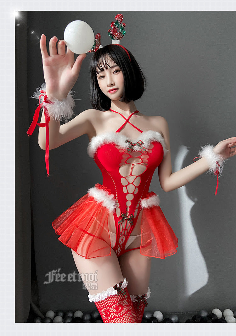 Christmas Elk Fur Mesh Sweater